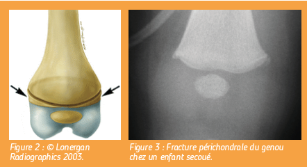 Chez le nourrisson et le jeune enfant, un mécanisme traumatique souvent rencontré est celui de l’enfant secoué. Les secousses par les membres ou par le tronc déterminent des lésions assez spécifiques qu’il convient de distinguer du traumatisme accidentel banal de l’enfant qui apprend à marcher (« toddler’s fracture » dans la littérature anglo-saxonne) et des ostéopathies de carence.