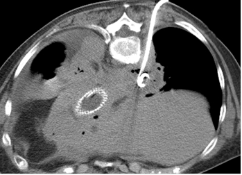drainage sous scanner d’un abcès médiastinal postérieur droit.