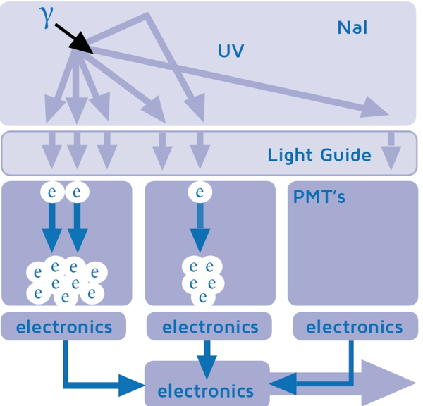 Ce mode de conversion du rayonnement gamma incident en signal électrique est donc un mode indirect (gamma → lumière puis lumière → charges électriques).